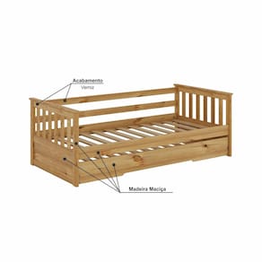 Mais conforto, mais espaço e mais diversão para os pequenos! Acompanha Cama Auxiliar: Sim Acompanha Colchão: Não Altura do Estrado até o Chão: 28 cm Altura dos Pés: 3 cm Ambiente Principal: Quarto Cama Auxiliar Acompanha Colchão: Não Cama Auxiliar com Rodízio: Sim Cama Auxiliar Suporta Até (kg): 90 kg codigo_ean: 7900288114921 Complexidade da Montagem: Baixa: pode ser montado por uma pessoa sozinha Cor: Mel Cor do Produto: Mel Escala de Brilho: Semi-Brilho Informações Complementares: Os objetos que ambientam as fotos não acompanham o produto. Imagens meramente ilustrativas. Cores e tonalidades podem variar. Itens Inclusos: 1 Bicama, Kit Ferragem e Manual de Montagem Linha ou Coleção: Mission Manual de Montagem e Instalação: https://cdn2.madeiramadeira.com.br/atributo/arbol-movelaria/2781095-5013-17436209575105.pdf Marca: Arbol Movelaria Material da Cabeceira: Madeira Material do Estrado: Madeira Maciça Material dos Pés: Metal Material Principal: Madeira Maciça modular: Não Necessita Montagem: Sim Origem do Produto: Nacional Permite a Utilização de Cama Auxiliar: Sim Peso: 44 kg Possui Baú: Não Possui Gavetas: Não Possui Pés: 02 Possui Portas: Não Possui Prateleiras: Não Possui Rodízio: Sim Recomendações de Uso, Manutenção e Limpeza: Não armazenar ou utilizar o produto em locais com excesso de umidade. Para limpeza, não utilizar produtos químicos e abrasivos, usar apenas com pano umedecido, para garantir a maior durabilidade do móvel. Seguir rigorosamente as instruções de uso contidas no Manual de Montagem. Recuros: Cama Auxiliar Rodízio com Trava: Não Sapatas Niveladoras: Não Sistema de Montagem: Parafusos, Cavilhas, Porcas Elípticas, Rodízios, Chave Allen Suporta Até (kg): 90 kg Tamanho da Cama: Solteiro Tamanho do Colchão Indicado (L x C): 88cm x 188cm Tamanho do Colchão Indicado Cama Auxiliar: 88cm x 188cm Tipo de Cama: Bicama Tipo de Colchão: Solteiro Tipo de Estrado: Fixo Tipo de Madeira Maciça: Pinus