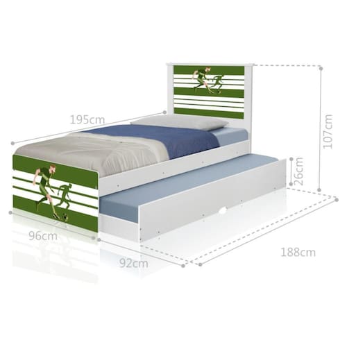 - Colchão Incluso: 2 unidades (88cm x 188cm - solteiro)