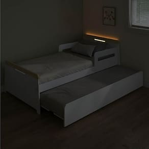 1x Cama Solteiro com Led Petit MadeiraOriginals Branco/Mel Largura: 194 cm Altura: 76 cm Peso: 30,4 kg Profundidade: 104 cm Necessita Montagem: Sim