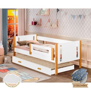 Bicama Infantil Com Grade De Proteção E Colchões Mirela Branca/Amêndoa + Luminária LedA cama infantil Mirela possui elegância e modernidade sem perder o conforto. Ainda oferece uma maior autonomia para o pequeno descer e explorar todo o cômodo, o que deixa o espaço não só mais divertido como também perfeito para estimular o desenvolvimento sensorial. Acompanha também cama auxiliar para acomodar visitas.Tipo: Cama SolteiroModelo: MirelaCor: Branca/AmêndoaGarantia: 90 diasProduto DesmontadoCama Auxiliar possui rodízios (rodinhas)Acompanha manual e kit de montagemCom Grade de Proteção dos dois ladosAcompanha 2 colchões Solteiro Infantil (Altura: 12cm x Largura: 88cm x Comprimento: 188cm)Acompanha 1 Luminária Led NuvemMedidas CamaAltura: 65cmLargura: 95cmComprimento: 195cmMedidas Cama AuxiliarAltura: 20cmLargura: 91,5cmComprimento: 189cmATENÇÃOIMAGENS MERAMENTE ILUSTRATIVAS REALIZADO EDIÇÃO, PODENDO HAVER UMA PEQUENA VARIAÇÃO DE COR DEPENDENDO DE CADA TELA OU MONITOR.