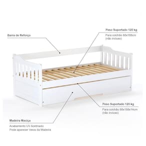 Material Principal: Madeira Maciça | Cor Predominante: Branco | Necessita Montagem: Sim | Acompanha Colchão: Não | Cor: Branco | Tipo de Cama: Bicama