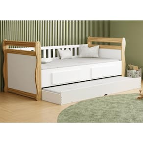 Bicama Infantil Solteiro Maria - Móveis Peroba Estrutura em MDF Pintura UV atóxica 2 Gavetas Corrediças metálicas Bordas laqueadas Estrado de madeira Colchão recomendado 188 x 88 cm Acompanha cama auxiliar Pés em MDF