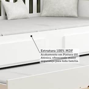 A Bicama Infantil Solteiro Maria da Móveis Peroba é a escolha ideal para quem busca praticidade e conforto no quarto das crianças. Produzida em MDF com pintura UV atóxica, conta com bordas laqueadas, estrado de madeira resistente e pés em MDF. Possui 2 gavetas com corrediças metálicas para organização e acompanha cama auxiliar, perfeita para receber visitas. Recomenda-se colchões de 188 x 88 cm (não incluso).