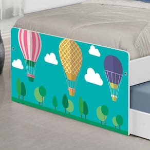 A Bicama Juvenil Barcelona Adesivada Balões no Céu é belíssima e conta com um design funcional, que ocupa pouco espaço no ambiente. A Coleção Balões no Céu foi desenvolvida por nossos designers oferecendo um visual exclusivo, descontraído e divertido ao ambiente. A cama auxiliar fica embaixo da principal e basta puxá-la por meio das corrediças para começar a fazer dela. É ideal para quartos pequenos e para caso precise de uma cama extra para receber um amigo, ou divida o dormitório com alguém. Feita em MDF e MDP e seu acabamento é feito com pintura UV brilhante tornando-a um produto resistente e com aspecto de novo por muito mais tempo. É uma excelente escolha para acomodar colchões de solteiro na medida de 188 cm x 88 cm de largura.