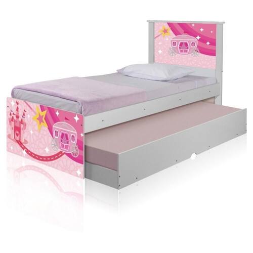 A Bicama Bibox Juvenil Barcelona Adesivada Carruagem Castelo é belíssima e conta com um design funcional, que ocupa pouco espaço no ambiente.