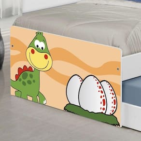 A Bicama Juvenil Barcelona Adesivada Dinossauro Baby é belíssima e conta com um design funcional, que ocupa pouco espaço no ambiente. A Coleção Dinossauro Baby foi desenvolvida por nossos designers oferecendo um visual exclusivo, descontraído e divertido ao ambiente. A cama auxiliar fica embaixo da principal e basta puxá-la por meio das corrediças para começar a fazer dela. É ideal para quartos pequenos e para caso precise de uma cama extra para receber um amigo, ou divida o dormitório com alguém. Feita em MDF e MDP e seu acabamento é feito com pintura UV brilhante tornando-a um produto resistente e com aspecto de novo por muito mais tempo. É uma excelente escolha para acomodar colchões de solteiro na medida de 188 cm x 88 cm de largura.