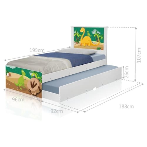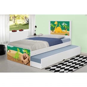 A Bicama Bibox Juvenil Barcelona Adesivada Dinossauro é belíssima e conta com um design funcional, que ocupa pouco espaço no ambiente.