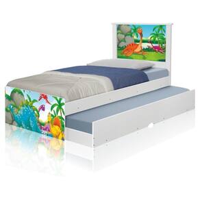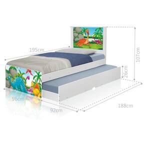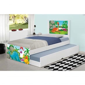 A Bicama Bibox Juvenil Barcelona Adesivada Dinossauros no Lago é belíssima e conta com um design funcional, que ocupa pouco espaço no ambiente.