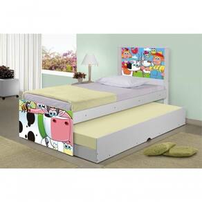 A Bicama Bibox Juvenil Barcelona Adesivada Fazendinha Feliz é belíssima e conta com um design funcional, que ocupa pouco espaço no ambiente.