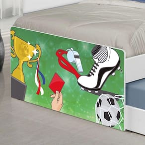 A Bicama Juvenil Barcelona Adesivada Futebol Placar é belíssima e conta com um design funcional, que ocupa pouco espaço no ambiente. A Coleção Futebol Placar foi desenvolvida por nossos designers oferecendo um visual exclusivo, descontraído e diido ao ambiente. A cama auxiliar fica embaixo da principal e basta puxá-la por meio das corrediças para começar a fazer uso dela. É ideal para quartos pequenos e para caso precise de uma cama extra para receber um amigo, ou divida o dormitório com alguém. Feita em MDF e MDP e seu acabamento é feito com pintura UV brilhante tornando-a um produto resistente e com aspecto de por muito mais tempo. É uma excelente escolha para acomodar colchões de solteiro na medida de 188 cm x 88 cm de largura.