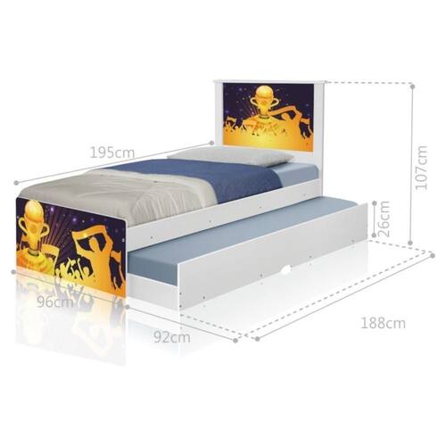 MODELO: Bicama Juvenil Adesivada Futebol Troféu com Colchões | ALTURA DO PRODUTO COM EMBALAGEM (CM): 53 | MATERIAL PRINCIPAL: MDF/MDP | ESTADO DE ORIGEM: SP | LARGURA PRODUTO COM EMBALAGEM (CM): 88 | CORES DO PRODUTO (FILTRO DE CORES): Branco | ALTURA DO PRODUTO (CM): 107 | PESO PRODUTO COM EMBALAGEM (KG): 46,9 | PESO DO PRODUTO (KG): 46,1 | MATERIAL PARA FILTRO: MDF/MDP | INSTRUÇÕES/CUIDADOS: Limpar com pano macio e seco, não utilizar produtos abrasivos. | COMPRIMENTO PRODUTO COM EMBALAGEM (CM): 195 | PRODUTO PRECISA DE MONTAGEM?: Sim, a montagem é simples mas sugerimos a contratação do nosso de montagem (para os CEPs em que o está disponível) ou de algum experiente de sua preferência | CONTEÚDO DA EMBALAGEM: 1 Bicama | LARGURA DO PRODUTO (CM): 96 | COR PREDOMINANTE: Branco | DESCRIÇÃO DO TAMANHO: Altura: 107 cm Largura: 96 cm Comprimento: 195 cm | COMPRIMENTO DO PRODUTO (CM): 195