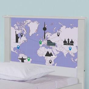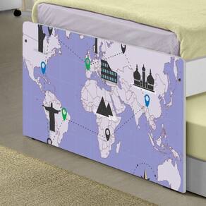 A Bicama Juvenil Barcelona Adesivada Mapa Viagens é belíssima e conta com um design funcional, que ocupa pouco espaço no ambiente. A Coleção Mapa Viagens foi desenvolvida por nossos designers oferecendo um visual exclusivo, descontraído e divertido ao ambiente. A cama auxiliar fica embaixo da principal e basta puxá-la por meio das corrediças para começar a fazer dela. É ideal para quartos pequenos e para caso precise de uma cama extra para receber um amigo, ou divida o dormitório com alguém. Feita em MDF e MDP e seu acabamento é feito com pintura UV brilhante tornando-a um produto resistente e com aspecto de novo por muito mais tempo. É uma excelente escolha para acomodar colchões de solteiro na medida de 188 cm x 88 cm de largura.