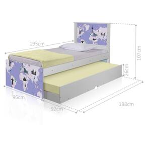 - Medidas da Cama Auxiliar: Altura: 26 cm Largura: 188 cm Comprimento: 92 cm