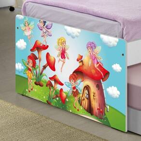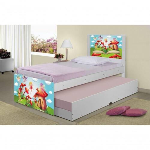 A Bicama Juvenil Barcelona Adesivada Mundo das Fadinhas é belíssima e conta com um design funcional, que ocupa pouco espaço no ambiente. A Coleção Mundo das Fadinhas foi desenvolvida por nossos designers oferecendo um visual exclusivo, descontraído e divertido ao ambiente. A cama auxiliar fica embaixo da principal e basta puxá-la por meio das corrediças para começar a fazer dela. É ideal para quartos pequenos e para caso precise de uma cama extra para receber um amigo, ou divida o dormitório com alguém. Feita em MDF e MDP e seu acabamento é feito com pintura UV brilhante tornando-a um produto resistente e com aspecto de novo por muito mais tempo. É uma excelente escolha para acomodar colchões de solteiro na medida de 188 cm x 88 cm de largura.