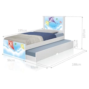 A Bicama Bibox Juvenil Barcelona Adesivada Pipas é belíssima e conta com um design funcional, que ocupa pouco espaço no ambiente.