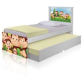 Bicama Bibox Juvenil Barcelona Adesivada Safari Macaquinhos - Branco