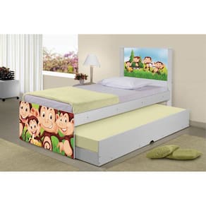 A Bicama Bibox Juvenil Barcelona Adesivada Safari Macaquinhos é belíssima e conta com um design funcional, que ocupa pouco espaço no ambiente.