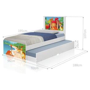 A Bicama Bibox Juvenil Barcelona Adesivada Terra dos Dinossauros é belíssima e conta com um design funcional, que ocupa pouco espaço no ambiente.