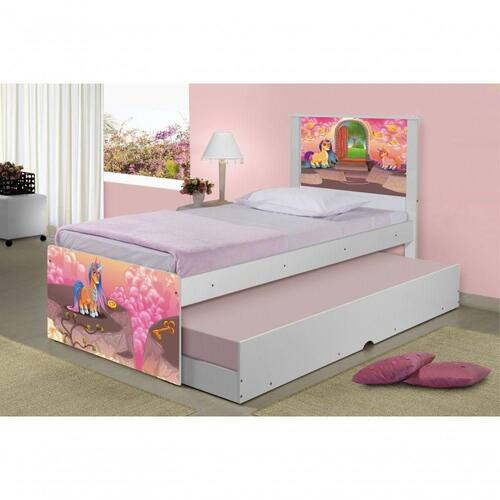 Bicama Juvenil Adesivada Unicórnios Mágicos Com Colchões Bicama Juvenil Barcelona Adesivada Unicórnios Mágicos com 2 Colchões - Branco Ref. 1404