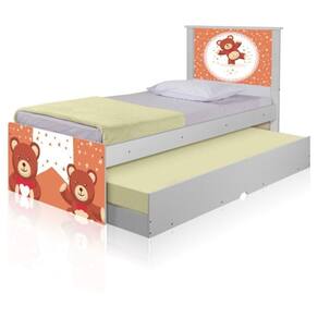 A Bicama Juvenil Barcelona Adesivada Ursinhos de Pelúcia é belíssima e conta com um design funcional, que ocupa pouco espaço no ambiente. A Coleção Ursinhos de Pelúcia foi desenvolvida por nossos designers oferecendo um visual exclusivo, descontraído e divertido ao ambiente. A cama auxiliar fica embaixo da principal e basta puxá-la por meio das corrediças para começar a fazer dela. É ideal para quartos pequenos e para caso precise de uma cama extra para receber um amigo, ou divida o dormitório com alguém. Feita em MDF e MDP e seu acabamento é feito com pintura UV brilhante tornando-a um produto resistente e com aspecto de novo por muito mais tempo. É uma excelente escolha para acomodar colchões de solteiro na medida de 188 cm x 88 cm de largura.
