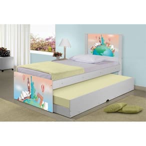 A Bicama Bibox Juvenil Barcelona Adesivada Volta ao Mundo é belíssima e conta com um design funcional, que ocupa pouco espaço no ambiente.