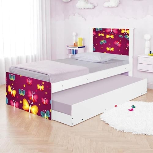 A Bicama Bibox Juvenil Adesivada é belíssima e conta com um design funcional, que ocupa pouco espaço no ambiente.