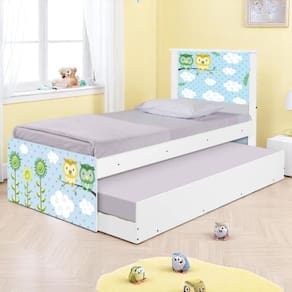 A Bicama Bibox Juvenil Adesivada é belíssima e conta com um design funcional, que ocupa pouco espaço no ambiente.