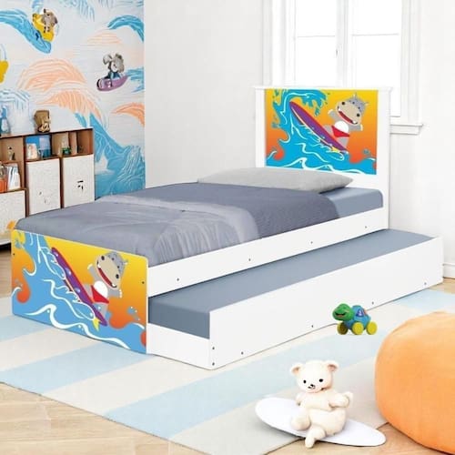 A Bicama Bibox Juvenil Adesivada é belíssima e conta com um design funcional, que ocupa pouco espaço no ambiente.