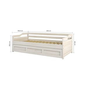 Durma melhor e complete o seu dormitório com a ajuda desta incrível Bicama. Dispõe de lindos detalhes, feita em Madeira Maciça Reflorestada, 1 cama auxiliar excelente para acomodar familiares e amigos, com rodízios fixo facilitando a locomoção. Suporta até 80 kg cada cama. Aproveite!