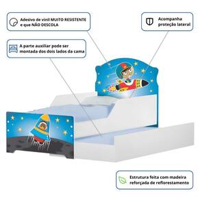 Bordas arredondadas evitando riscos de acidentes, adesivos em Vinil de alta qualidade e cama auxiliar.