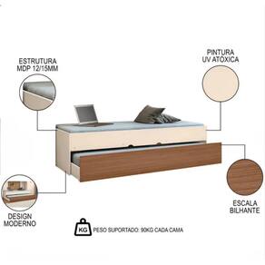 Tamanho da Cama Auxiliar (L x A x P): 190 x 25 x 90 cm