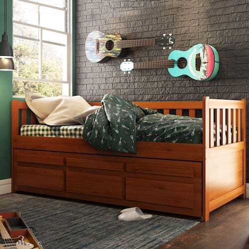 Bicama Reta Solteiro Castanho Claro 3 Gavetas Madeira Pinus - Saraiva