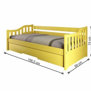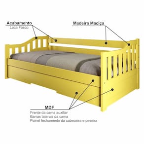 Com sua versatilidade, a Bicama Solteiro American se adapta a qualquer ambiente. Pode ser usada em quartos infantis e juvenis, quartos de hóspedes, apartamentos compactos, casas de praia ou campo, espaços multifuncionais entre outros. Se adapta a diversos estilos, tornando seu ambiente mais bonito, confortável e funcional! Produto Montado: Sim Acompanha Cama Auxiliar: Sim Acompanha Colchão: Não Altura do Estrado até o Chão: 28 cm Altura dos Pés: 3 cm Altura Máxima dos Pés: 3.0000 Ambiente Principal: Quarto Cama Auxiliar Acompanha Colchão: Não Cama Auxiliar com Rodízio: Sim Cama Auxiliar Suporta Até (kg): 90 kg codigo_ean: 7900288118462 Complexidade da Montagem: Baixa: pode ser montado por uma pessoa sozinha Comprimento: 196,5 cm Cor: Amarelo Cor do Produto: Amarelo Escala de Brilho: Fosco Extensível: Sim Informações Complementares: Os objetos que ambientam as fotos não acompanham o produto. Imagens meramente ilustrativas. Cores e tonalidades podem variar. Itens Inclusos: 1 Bicama, Kit Ferragem e Manual de Montagem Largura Máxima: 192,5 cm Largura Mínima: 99 cm Linha ou Coleção: American Manual de Montagem e Instalação: https://product-hub-prd.madeiramadeira.com.br/982025/documents/2255096c-c329-4cfe-8c40-f7d02f94fac62754221501317424171437144.pdf Marca: Arbol Movelaria Material do Estrado: Madeira Maciça Material dos Pés: Metal Material Principal: Madeira Maciça Necessita Montagem: Sim Origem do Produto: Nacional Permite a Utilização de Cama Auxiliar: Sim Peso: 48 kg Peso Suportado por cada cama: 90.0000 Possui Baú: Não Possui Escrivaninha: Não Possui Espelhos: Não Possui Gavetas: Não Possui Nichos: Não Possui Pés: 02 Possui Portas: Não Possui Prateleiras: Não Possui Rodízio: Sim Recomendações de Uso, Manutenção e Limpeza: Não armazenar ou utilizar o produto em locais com excesso de umidade. Para limpeza, não utilizar produtos químicos e abrasivos, usar apenas com pano umedecido, para garantir a maior durabilidade do móvel. Seguir rigorosamente as instruções de uso contidas no Manual de Montagem. Rodízio com Trava: Não Sapatas Niveladoras: Não Sistema de Montagem: Parafusos, Cavilhas, Porcas Elípticas, Rodízios, Chave Allen Tamanho da Cama: Solteiro Tamanho do Colchão Indicado (L x C): 88cm x 188cm Tamanho do Colchão Indicado Cama Auxiliar: 88cm x 188cm Tipo de Cama: Bicama Tipo de Colchão: Solteiro Tipo de Estrado: Fixo Tipo de Madeira Maciça: Pinus