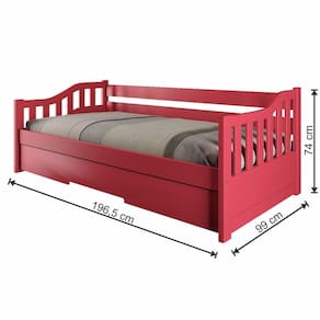 Com sua versatilidade, a Bicama Solteiro American se adapta a qualquer ambiente. Pode ser usada em quartos infantis e juvenis, quartos de hóspedes, apartamentos compactos, casas de praia ou campo, espaços multifuncionais entre outros. Se adapta a diversos estilos, tornando seu ambiente mais bonito, confortável e funcional! Produto Montado: Sim Acompanha Cama Auxiliar: Sim Acompanha Colchão: Não Altura do Estrado até o Chão: 28 cm Altura dos Pés: 3 cm Altura Máxima dos Pés: 3.0000 Ambiente Principal: Quarto Cama Auxiliar Acompanha Colchão: Não Cama Auxiliar com Rodízio: Sim Cama Auxiliar Suporta Até (kg): 90 kg codigo_ean: 7900288118493 Complexidade da Montagem: Baixa: pode ser montado por uma pessoa sozinha Comprimento: 196,5 cm Cor: Vermelho Cor do Produto: Vermelho Escala de Brilho: Fosco Extensível: Sim Informações Complementares: Os objetos que ambientam as fotos não acompanham o produto. Imagens meramente ilustrativas. Cores e tonalidades podem variar. Itens Inclusos: 1 Bicama, Kit Ferragem e Manual de Montagem Largura Máxima: 192,5 cm Largura Mínima: 99 cm Linha ou Coleção: American Manual de Montagem e Instalação: https://product-hub-prd.madeiramadeira.com.br/982084/documents/85e3f545-fef0-4f2c-b64c-b5886cfbdd612754221501317424171437144.pdf Marca: Arbol Movelaria Material do Estrado: Madeira Maciça Material dos Pés: Metal Material Principal: Madeira Maciça Necessita Montagem: Sim Origem do Produto: Nacional Permite a Utilização de Cama Auxiliar: Sim Peso: 48 kg Peso Suportado por cada cama: 90.0000 Possui Baú: Não Possui Escrivaninha: Não Possui Espelhos: Não Possui Gavetas: Não Possui Nichos: Não Possui Pés: 02 Possui Portas: Não Possui Prateleiras: Não Possui Rodízio: Sim Recomendações de Uso, Manutenção e Limpeza: Não armazenar ou utilizar o produto em locais com excesso de umidade. Para limpeza, não utilizar produtos químicos e abrasivos, usar apenas com pano umedecido, para garantir a maior durabilidade do móvel. Seguir rigorosamente as instruções de uso contidas no Manual de Montagem. Rodízio com Trava: Não Sapatas Niveladoras: Não Sistema de Montagem: Parafusos, Cavilhas, Porcas Elípticas, Rodízios, Chave Allen Tamanho da Cama: Solteiro Tamanho do Colchão Indicado (L x C): 88cm x 188cm Tamanho do Colchão Indicado Cama Auxiliar: 88cm x 188cm Tipo de Cama: Bicama Tipo de Colchão: Solteiro Tipo de Estrado: Fixo Tipo de Madeira Maciça: Pinus