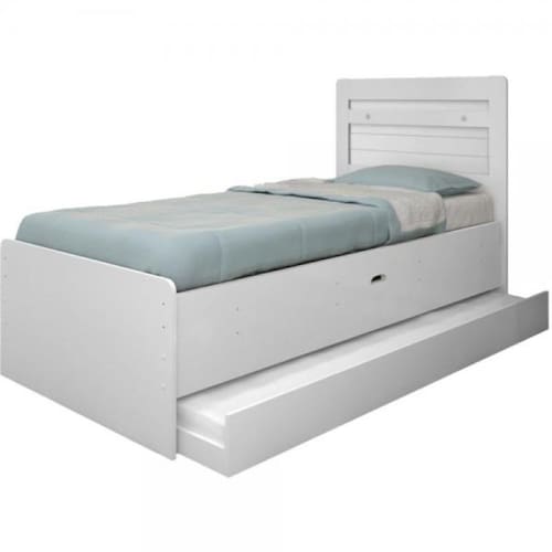 Bicama Solteiro Baú Larissa com Cama Auxiliar e 2 Colchões - Branca