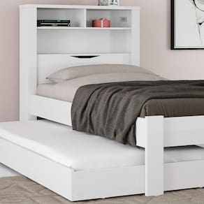 Essa bicama solteiro é a personificação do viés dos móveis atuais, já que além do design contemporâneo e cheio de charme, possui atributos que conferem praticidade para o dia a dia. São eles: cabeceira acoplada com 3 nichos para objetos de sua preferência, tomada 20 ampères, cama auxiliar e o melhor: um baú para você guardar travesseiros ou roupa de cama, auxiliando na organização e otimizando espaço disponível no quarto!! Não é simplesmente incrível?