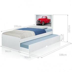 Bicama Solteiro Carro Classic Red Com Colchões - Branco