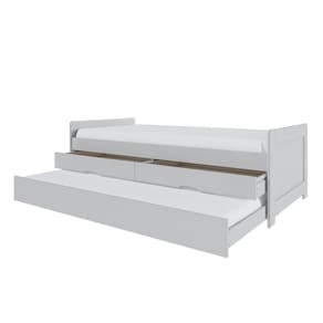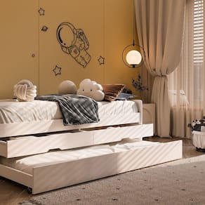 A Bicama Luma é ideal para quem busca otimizar o espaço sem abrir mão do conforto e da organização. Com um design clean e moderno, ela se harmoniza facilmente com qualquer decoração, especialmente em ambientes infantis e juvenis. Conta com uma prática Cama Auxiliar de rodízios, que desliza suavemente para oferecer um leito extra. Perfeita para receber amigos, primos ou para os pais que precisam acompanhar a criança durante a noite.O módulo inferior também integra duas gavetas espaçosas, ideais para guardar roupas de cama, brinquedos, livros ou objetos pessoais, mantendo o quarto sempre arrumado. Transforma o ambiente de dormir em um espaço de convivência e organização de forma rápida e eficiente. A solução perfeita para quartos versáteis! Produto Montado: Sim Acabamento da Gaveta: Pintura Acompanha Cama Auxiliar: Sim Acompanha Colchão: Não Altura do Estrado até o Chão: 41 cm Ambiente Principal: Quarto Cama Auxiliar Acompanha Colchão: Não Cama Auxiliar com Rodízio: Sim Cama Auxiliar Suporta Até (kg): 50 kg codigo_ean: 7900288287335 Complexidade da Montagem: Média: pode ser montado por mais de uma pessoa e/ou necessite de maior conhecimento para montagem Cor: Branco Cor do Produto: Branco Escala de Brilho: Semi-Brilho Escala de Brilho da Gaveta: Semi-Brilho Extensível: Não Gaveta com Chave: Não Itens Inclusos: 1 Bicama, Kit Ferragem e Manual de Montagem. Linha ou Coleção: Luma Manual de Montagem e Instalação: https://product-hub-prd.madeiramadeira.com.br/325138950/documents/c6e25dc0-ebd7-4af3-83a6-b74be737889b900240miulli190x90montagem.pdf Marca: Inter Link Material da Gaveta: Madeira Maciça Material do Estrado: Pinus Material Principal: Madeira Maciça Necessita Montagem: Sim Origem do Produto: Nacional Permite a Utilização de Cama Auxiliar: Sim Peso: 44,5 kg Peso Máximo por Gaveta: 10 kg Peso Suportado por cada cama: 100 kg Possui Baú: Não Possui Escrivaninha: Não Possui Gavetas: Sim Possui Nichos: Não Possui Pés: Não Possui Portas: Não Possui Prateleiras: Não Possui Rodízio: Sim Quantidade de Gavetas: 02 Gavetas Recomendações de Uso, Manutenção e Limpeza: Não colocar o produto em lugar úmido, não arrastar, limpar somente com pano macio e seco, não expor o produto a incidência de luz solar, não colocar peso superior ao indicado. Rodízio com Trava: Não Sistema de Montagem: Parafusos, Cavilhas Tamanho da Cama: Solteiro Tamanho do Colchão Indicado (L x C): 88x188 Tamanho do Colchão Indicado Cama Auxiliar: 88x184 Tipo de Cama: Bicama Tipo de Colchão: Solteiro Tipo de Corrediça da Gaveta: Madeira Tipo de Estrado: Fixo Tipo de Madeira Maciça: Pinus Tipo de Madeira Maciça da Gaveta: Pinus Tipo de Puxador da Gaveta: Embutido