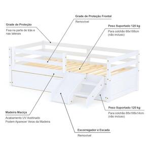 Diferenciais:Todo em Madeira, Auxiliar com 4 rodízios e Grade de Proteção, Grade Removível e Kit Escadinha/Escorrega.