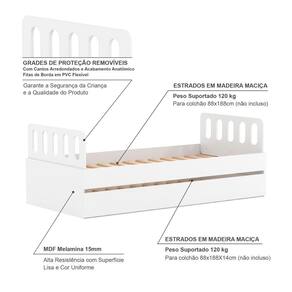 Medida do Colchão da Cama Solteiro (cm x cm): 88x188 (Não incluso)
