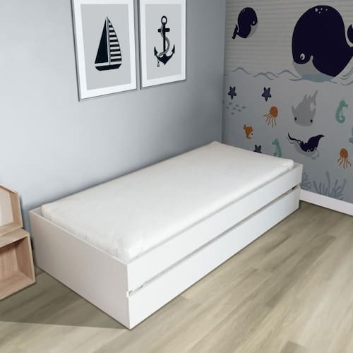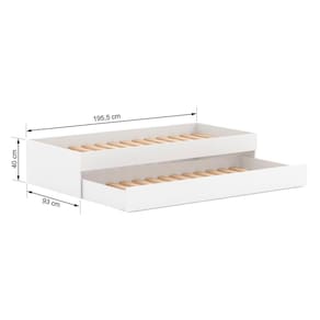 Material Principal: MDF | Cor Predominante: Branco | Necessita Montagem: Sim | Acompanha Colchão: Não | Tipo de Cama: Bicama | Altura: 40 | Largura: 93 | Comprimento: 195,5 | Peso: 55,6 | Peso máximo suportado: 120 | Cor Via: Branco | Peso com Embalagem: 56 | Comprimento com Embalagem: 199 | Largura com Embalagem: 40 | Altura com Embalagem: 30 | Tamanho da Cama: 40 x 93 x 195,5 | Descrição do Tamanho: Solteiro