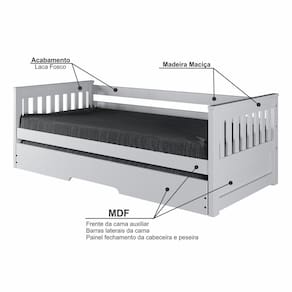 Uma peça versátil que garante beleza e funcionalidade no seu dia a dia! Produto Montado: Sim Acompanha Cama Auxiliar: Sim Acompanha Colchão: Não Altura do Estrado até o Chão: 28 cm Altura dos Pés: 3 cm Altura Máxima dos Pés: 3.0000 Ambiente Principal: Quarto Cama Auxiliar Acompanha Colchão: Não Cama Auxiliar com Rodízio: Sim Cama Auxiliar Suporta Até (kg): 90 kg codigo_ean: 7900288114938 Complexidade da Montagem: Baixa: pode ser montado por uma pessoa sozinha Comprimento: 199 cm Cor: Branco Cor do Produto: Branco Escala de Brilho: Fosco Extensível: Sim Informações Complementares: Os objetos que ambientam as fotos não acompanham o produto. Imagens meramente ilustrativas. Cores e tonalidades podem variar. Itens Inclusos: 1 Bicama, Kit Ferragem e Manual de Montagem Largura Máxima: 192,5 cm Largura Mínima: 101 cm Linha ou Coleção: Mission Manual de Montagem e Instalação: https://product-hub-prd.madeiramadeira.com.br/981978/documents/f4e8f66b-73b8-4eb0-871b-ad34824fb6fe2753858501317424096026319.pdf Marca: Arbol Movelaria Material do Estrado: Madeira Maciça Material dos Pés: Metal Material Principal: Madeira Maciça Necessita Montagem: Sim Origem do Produto: Nacional Permite a Utilização de Cama Auxiliar: Sim Peso: 44 kg Peso Suportado por cada cama: 90.0000 Possui Baú: Não Possui Escrivaninha: Não Possui Espelhos: Não Possui Gavetas: Não Possui Nichos: Não Possui Pés: 02 Possui Portas: Não Possui Prateleiras: Não Possui Rodízio: Sim Recomendações de Uso, Manutenção e Limpeza: Não armazenar ou utilizar o produto em locais com excesso de umidade. Para limpeza, não utilizar produtos químicos e abrasivos, usar apenas com pano umedecido, para garantir a maior durabilidade do móvel. Seguir rigorosamente as instruções de uso contidas no Manual de Montagem. Rodízio com Trava: Não Sapatas Niveladoras: Não Sistema de Montagem: Parafusos, Cavilhas, Porcas Elípticas, Rodízios, Chave Allen Tamanho da Cama: Solteiro Tamanho do Colchão Indicado (L x C): 88cm x 188cm Tamanho do Colchão Indicado Cama Auxiliar: 88cm x 188cm Tipo de Cama: Bicama Tipo de Colchão: Solteiro Tipo de Estrado: Fixo Tipo de Madeira Maciça: Pinus