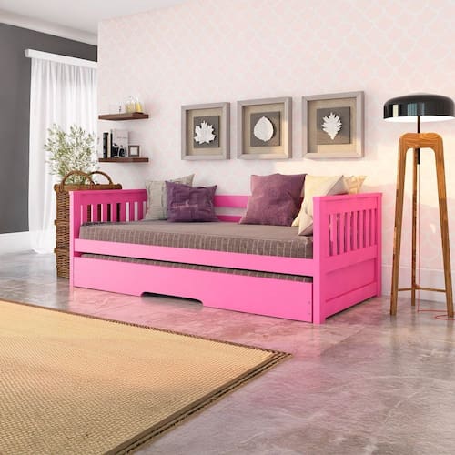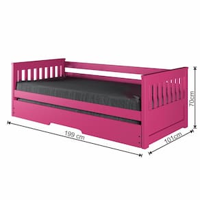 Uma peça versátil que garante beleza e funcionalidade no seu dia a dia! Produto Montado: Sim Acompanha Cama Auxiliar: Sim Acompanha Colchão: Não Altura do Estrado até o Chão: 28 cm Altura dos Pés: 3 cm Altura Máxima dos Pés: 3.0000 Ambiente Principal: Quarto Cama Auxiliar Acompanha Colchão: Não Cama Auxiliar com Rodízio: Sim Cama Auxiliar Suporta Até (kg): 90 kg codigo_ean: 7900288114952 Complexidade da Montagem: Baixa: pode ser montado por uma pessoa sozinha Comprimento: 199 cm Cor: Rosa Cor do Produto: Rosa Escala de Brilho: Fosco Extensível: Sim Informações Complementares: Os objetos que ambientam as fotos não acompanham o produto. Imagens meramente ilustrativas. Cores e tonalidades podem variar. Itens Inclusos: 1 Bicama, Kit Ferragem e Manual de Montagem Largura Máxima: 192,5 cm Largura Mínima: 101 cm Linha ou Coleção: Mission Manual de Montagem e Instalação: https://product-hub-prd.madeiramadeira.com.br/982015/documents/c55b0922-5afd-4517-b1cc-dc4552f5986c2753858501317424096026319.pdf Marca: Arbol Movelaria Material do Estrado: Madeira Maciça Material dos Pés: Metal Material Principal: Madeira Maciça Necessita Montagem: Sim Origem do Produto: Nacional Permite a Utilização de Cama Auxiliar: Sim Peso: 44 kg Peso Suportado por cada cama: 90.0000 Possui Baú: Não Possui Escrivaninha: Não Possui Espelhos: Não Possui Gavetas: Não Possui Nichos: Não Possui Pés: 02 Possui Portas: Não Possui Prateleiras: Não Possui Rodízio: Sim Recomendações de Uso, Manutenção e Limpeza: Não armazenar ou utilizar o produto em locais com excesso de umidade. Para limpeza, não utilizar produtos químicos e abrasivos, usar apenas com pano umedecido, para garantir a maior durabilidade do móvel. Seguir rigorosamente as instruções de uso contidas no Manual de Montagem. Rodízio com Trava: Não Sapatas Niveladoras: Não Sistema de Montagem: Parafusos, Cavilhas, Porcas Elípticas, Rodízios, Chave Allen Tamanho da Cama: Solteiro Tamanho do Colchão Indicado (L x C): 88cm x 188cm Tamanho do Colchão Indicado Cama Auxiliar: 88cm x 188cm Tipo de Cama: Bicama Tipo de Colchão: Solteiro Tipo de Estrado: Fixo Tipo de Madeira Maciça: Pinus