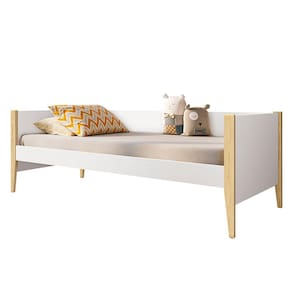 Cama Solteiro Noah Branco Acetinado com Pés Madeira Natural - Reller