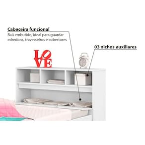 Abaixo segue os produtos do KIT: Bicama Solteiro Ravena 2 Gavetas c/Auxiliar Branco - Conquista