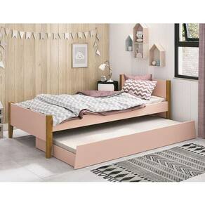 Bicama Solteiro Simba Rosa Fosco Com Pés Amadeirado E Colchões D20 E D33 - Reller Móveis Rosa Fosco