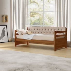 Com Detalhe Estofado Capitonê Tecido Estofado: Veludo Cor Estofado: Bege Estrutura em Madeira Cor Estrutura: Castanho Com estrado de Ripas de MDF 9mm
