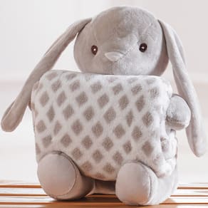 Bichinho de Pelúcia Fazenda New com Manta Bebê 100x75cm Coelho -