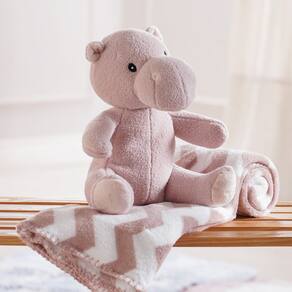 Bichinho de Pelúcia Floresta New com Manta Bebê 100x75cm Hipopótamo -
