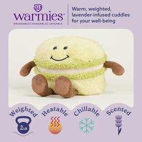 — Bicho de pelúcia Warmies para micro-ondas: Green Macaroon é um brinquedo de pelúcia pesado confortável, abraçável e adorável para todas as idades que pode ser facilmente aquecido para fornecer horas de calor relaxante ou frio no freezer para um toque refrescante e fresco. Perfeito para conforto e aconchego. 13 polegadas de altura, 1,5 libras.
